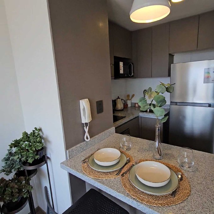 Los departamentos vienen semi amoblados, con refrigerador, microondas , banquetas , mesa de diario, futón, cortinas roller e iluminación