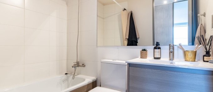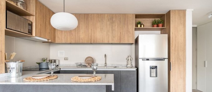Diseño interior con espacio para lavadora.