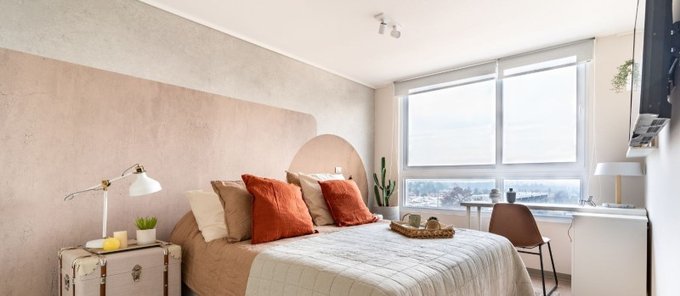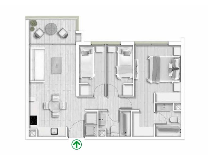 Este espacioso departamento de 62 m totales, está distribuido inteligentemente con 3 dormitorios y 2 baños completos, ideal para familias o profesionales. Orientación Poniente, mira hacía el patio interior del edificio.