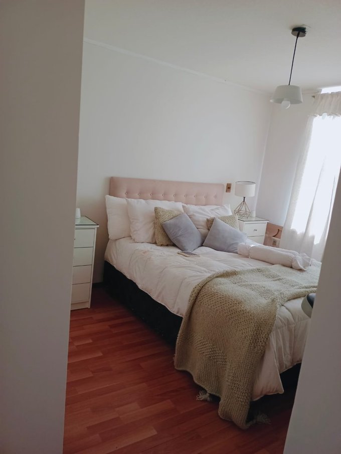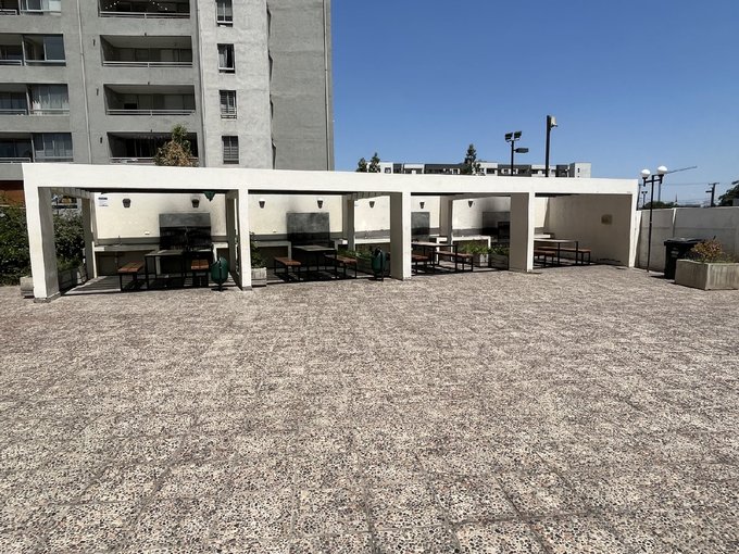 El edificio tiene equipamiento muy completo con piscina, quinchos, áreas verdes, juegos infantiles, sala multiuso, gimnasio, lavandería y estacionamientos de visita. Acceso controlado 24/7 y cámaras de seguridad en áreas comunes.
