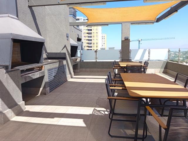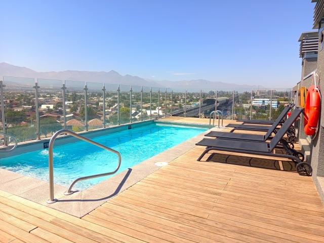 Departamento nuevo disponible para arriendo excelente opcion de arriendo en la florida, a pasos del metro, minima densidad, moderno y equipado. * 2 dormitorios, 2 baños, principal en suite y con walk in closet. * elegantes terminaciones. * amplia cocina americana, equipada con encimera eléctrica, campana extraíble de acero inoxidable, mesones de granito y con salida a logia * estar con salida a amplia terraza. * ventanas termopanel, pisos cerámicos. * segundo dormitorio para 2 camas. Equipamiento en edificio: quinchos, piscina y sala de eventos en azotea de maravillosa vista panorámica. Sala multiuso; sala gourmet; bicicleteros; estacionamiento de visitas, cctv; acceso controlado; código interno procasa: 69006