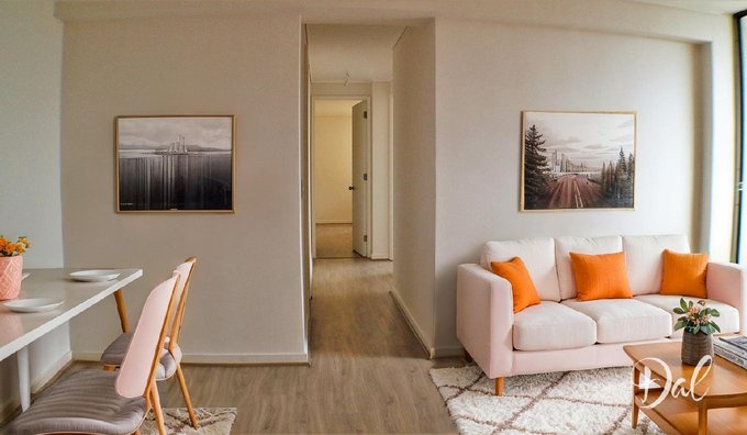 El edificio es de sólo 11 pisos, con espacios comunes como salón de eventos, áreas verdes con juegos infantiles, piscina y estacionamiento de visitas. Se encuentra al lado del supermercado Tottus, a pasos de Tobalaba.