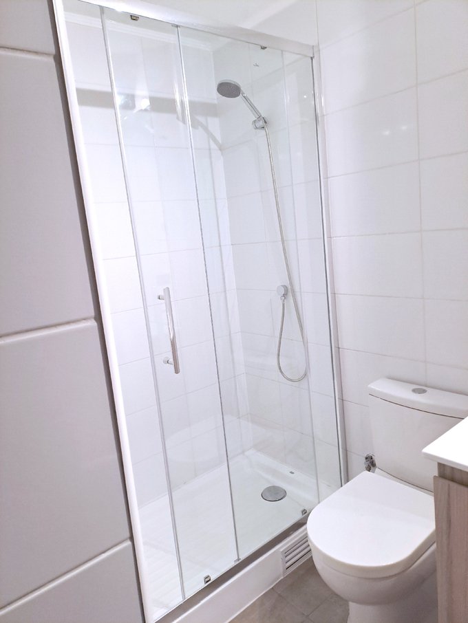Baño moderno con ducha y shower door de cristal 🚿