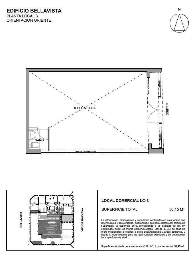 - Posibilidad unir con el Local N3 y N4, totalizando 100 m
