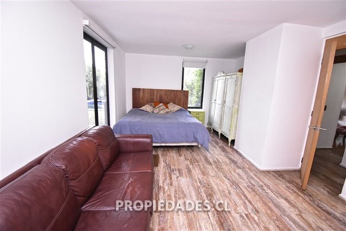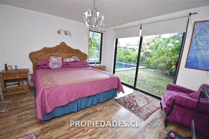 Dormitorio principal en suite con vista y salida hacia el jardín. Baño con tina y ventilación natural.