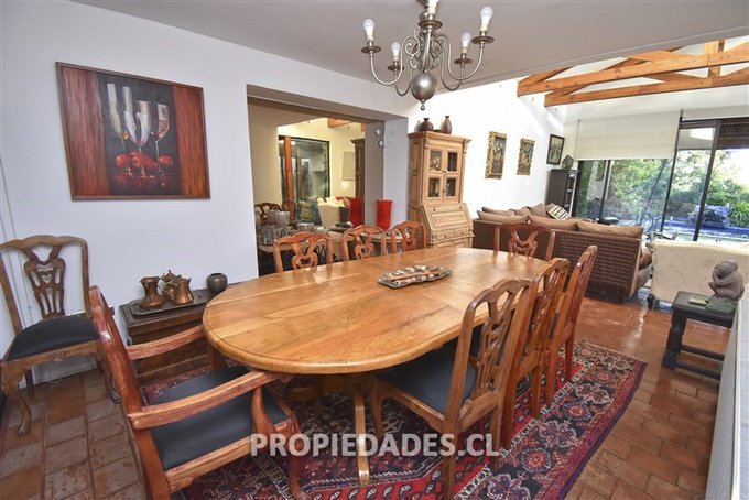 Comedor con vista hacia un pequeña terraza interior. Living de doble altura con salida a agradable terraza con quincho y jardín formado con piscina y un hermoso entorno rodeado de árboles y plantas.