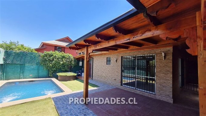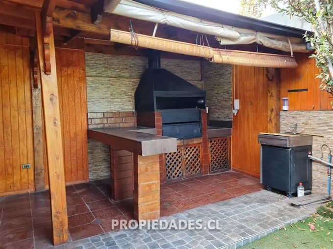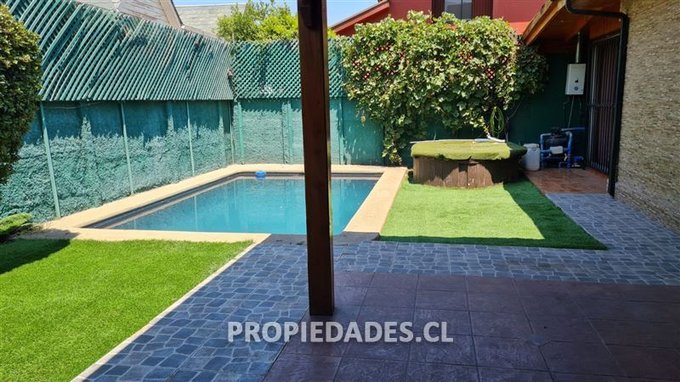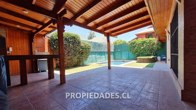 Casa en condominio en La Reina, con 3 dormitorios, 3 baños completos, escritorio, living y comedor, con piso vinílico, cocina con comedor de diario, piscina, quincho, zona de lavado y planchado, 1 equipo de aire acondicionado, protecciones en toda la casa, condominio con plaza interior, con 2 estacionamientos.