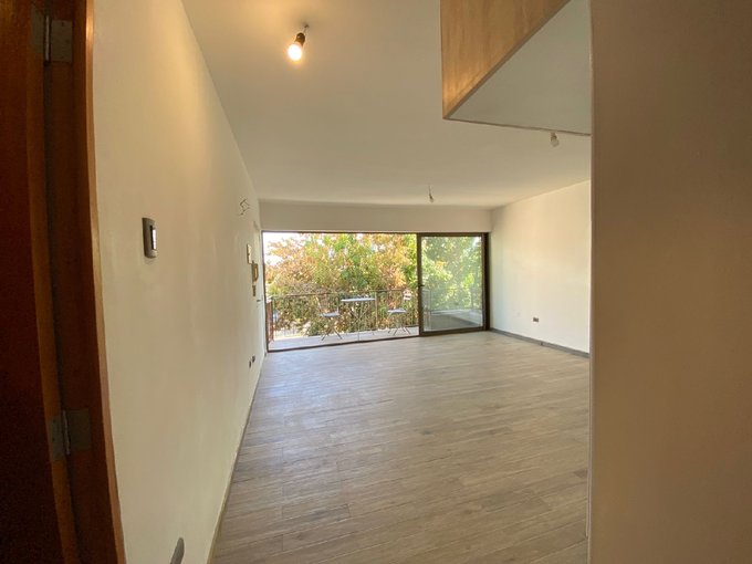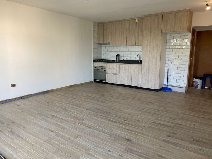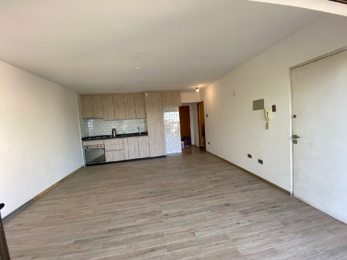 Living comedor con salida a balcón , Cocina americana amoblada con cocina encimera de 4 platos , horno eléctrico, mesada de granito