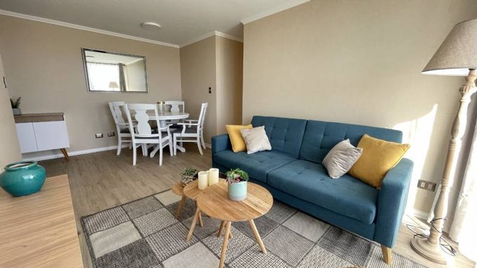 Descubre este departamento completamente amoblado, ubicado en el segundo piso de un edificio con escaleras. Disfruta de la conveniencia de estar cerca de Supermercado Jumbo, centros comerciales, transporte público y universidades, todo en un sector tranquilo y seguro.