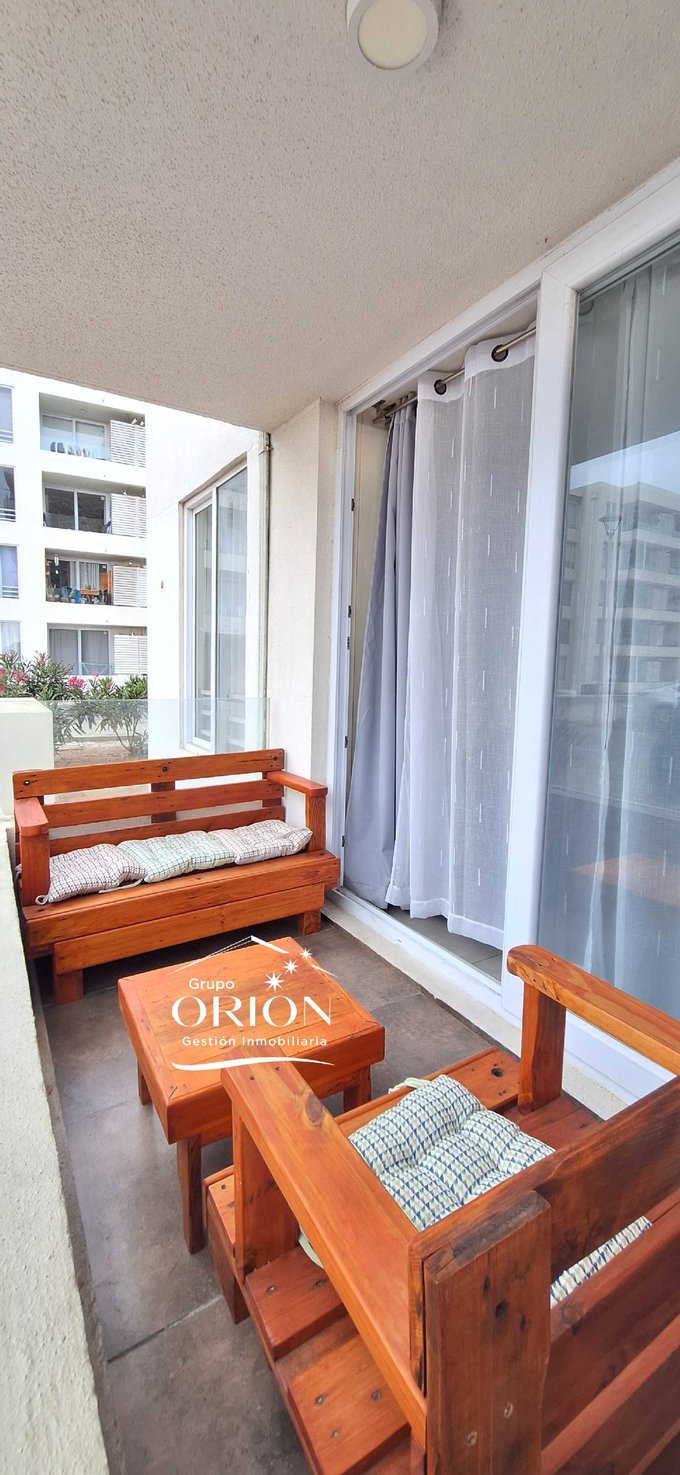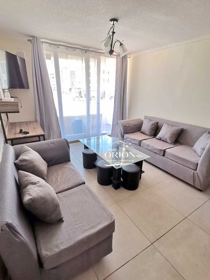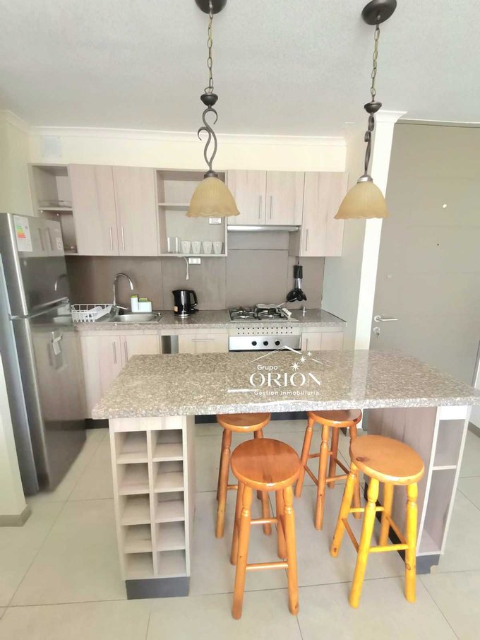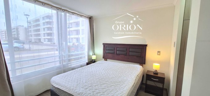 Grupo Orión Gestión Inmobiliaria, Arrienda cómodo departamento año corrido amoblado, consta de 2 dormitorios, 2 baños, living comedor, cocina americana equipada, logia, 1 estacionamiento.