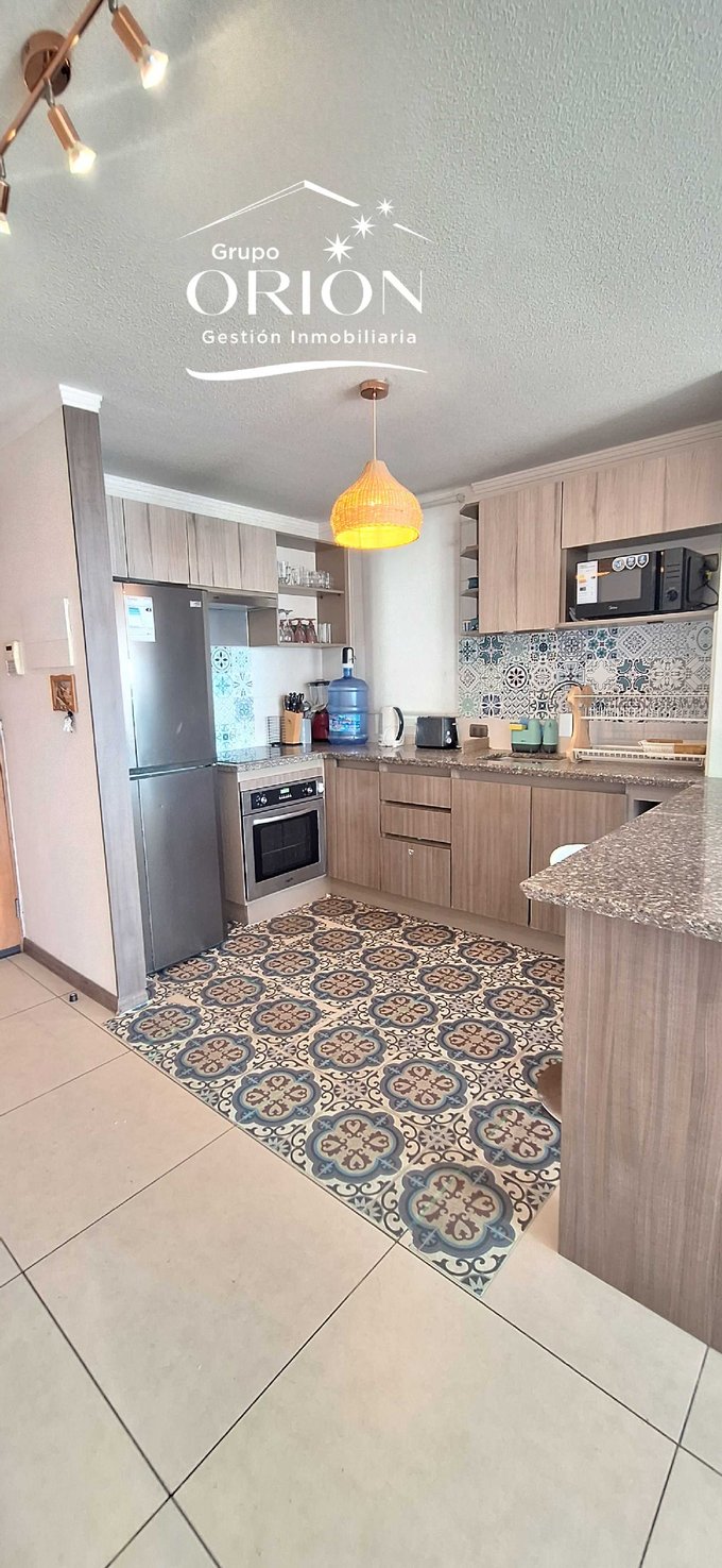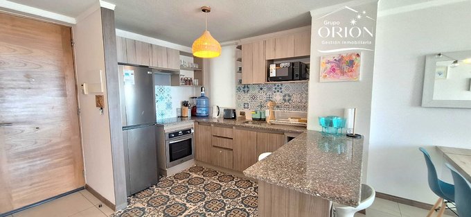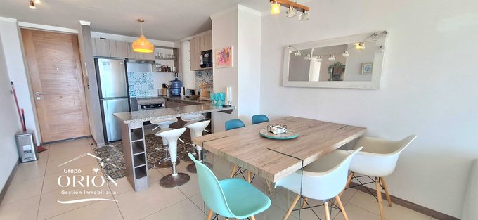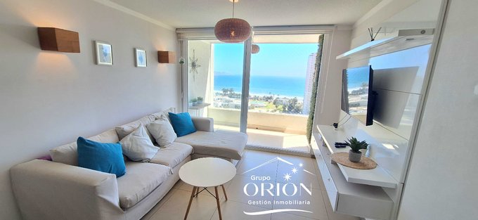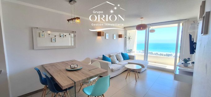 Grupo Orión Gestión Inmobiliaria, arrienda departamento amoblado de marzo a diciembre, consta de living comedor, cocina americana, 3 dormitorios, 2 baños, estacionamiento, vista, completamente equipado.