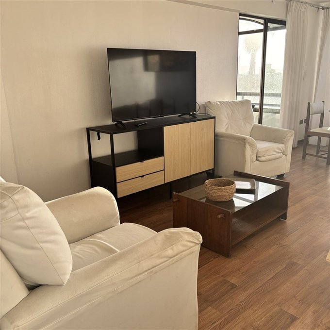 Se arrienda por año corrido, amoblado ó sin amoblar, cómodo y amplio departamento de aproximadamente 95 M2. Consta de 3 dormitorios, uno de ellos en suite, 2 baños, cocina equipada, amplio living comedor, terraza con vista al mar, 1 estacionamiento. Disponible para familias hasta de 06 personas. Emplazado en primera línea de la Avenida del Mar con los Arrayanes, rodeado de restaurantes y comercio en general.