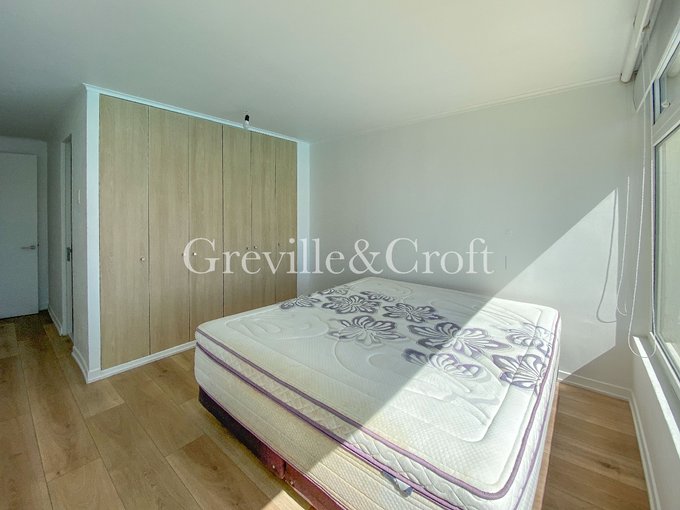 Este departamento vive de luz natural, y se nota en cada espacio. El nuevo piso de porcelanato Portobello refleja el sol que entra a raudales por los ventanales termopanel, y la cocina con su encimera de cuarzo blanco tiene esa sensación de estar recién salida de una revista de diseño.
