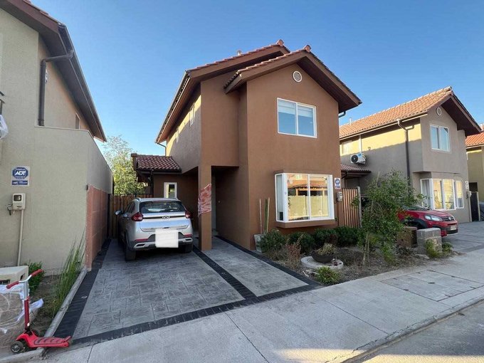 En la comuna de Lampa en Ciudad Parque Chicauma se arrienda esta casa en condominio cerrado de 2 pisos con 3 dormitorios y 3 baños (1 en suite en dormitorio principal, otro de visita y otro en piso 2), dormitorio principal con walk in closet, cocina americana con isla comedor, encimera a gas y horno eléctrico, patio, terraza, living, comedor, orientación norponiente en patio.