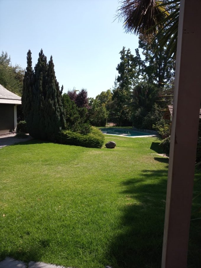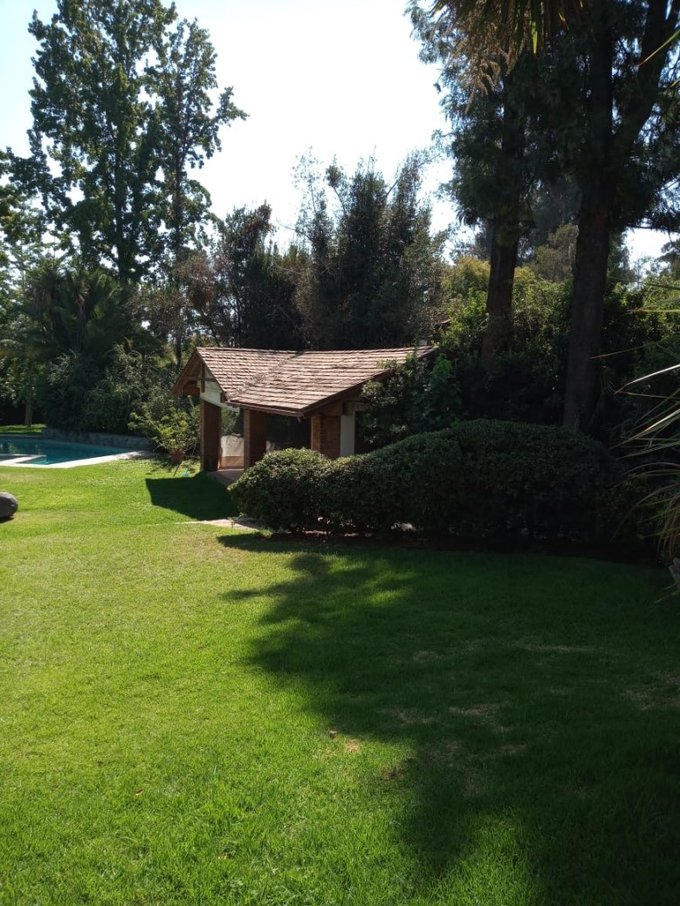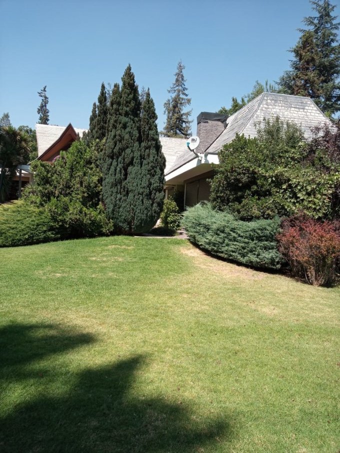 Hermoso parque con hermosos arboles, prado enorme, flores y plantas, gran piscina exterior con camarin y baño, gran quincho, amplias terrazas, cancha de tenis, capacidad varios estacionamientos