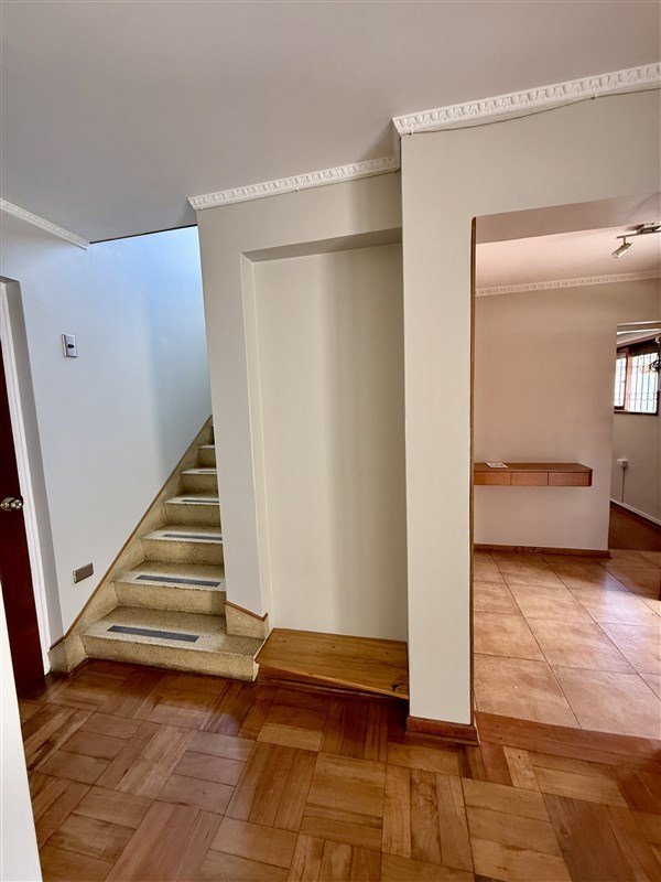 En el segundo piso hay 3 dormitorios que comparten un baño. Tiene un entretecho para guardar cosas.