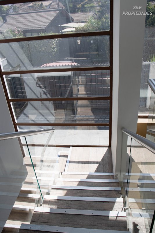 Hall de acceso con elegante escalera. Amplio living y comedor separados, con excelente conexión hacia el jardín. Espacio exterior con terraza, quincho y piscina, ideal para disfrutar en familia. Además, cuenta con un dormitorio y baño independientes.