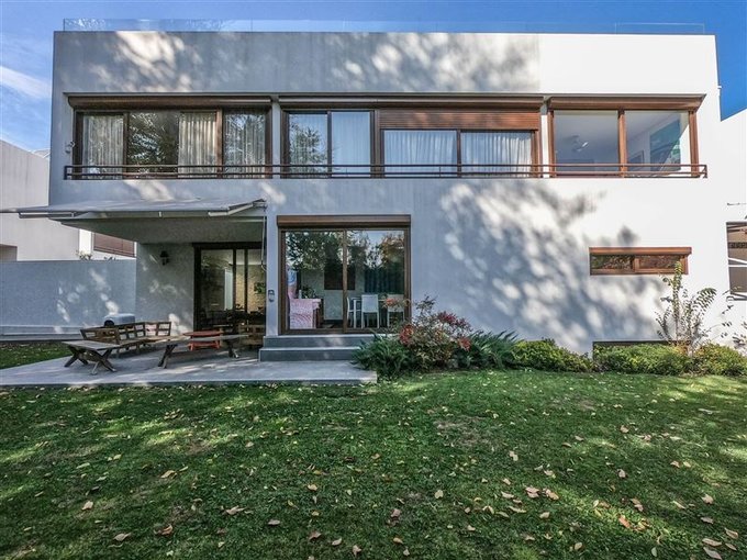 Moderna casa mediterránea en condominio, seguridad las 24 hrs,excelente conectividad y orientación.Hall amplio, recibos separados (living con salida a terraza techada), 3 dormitorios ( principal en suitte con 2 w.closet y escritorio),amplia sala de estar,dormitorios y sala de estar en 2do piso, 5 baños (1 visita),cocina amoblada y equipada con comedor de diario,servicios,lavadero cerrado y patio de servicios, zócalo, mirador terraza panoramica en 3er piso,calefactor solar,ventanas termopanel y pvc,piso de madera en toda la casa, porcelanato en baños y cocina,calefacción por losa y radiador,piscina,quincho techado,riego automático,4 estacionamientos.