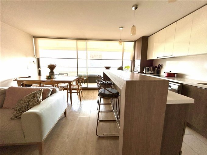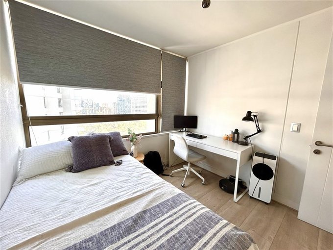 Con 1 estacionamiento y una bodega. Edificio equipado con piscina en el piso 21 con quincho y piscina calefaccionada en el primer piso. Gimnasio completo, salones multiuso, lavandería.