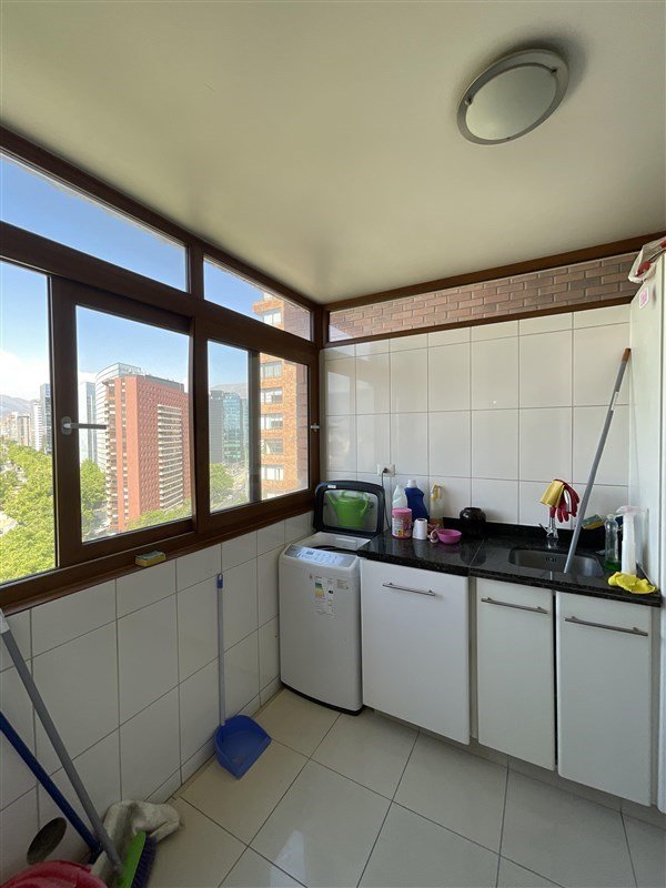 El departamento dispone de 4 dormitorios, 3 baños, amplia cocina independiente, logia con ventilación natural, habitaciones de gran tamaño con walk-in closet y ascensor con acceso directo. Incluye estacionamiento, bodega, 3 aires acondicionados, refrigerador de dos puertas y cortinas instaladas.