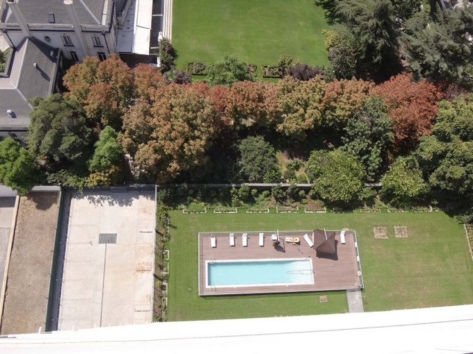 Gran vista a jardines de la embajada.