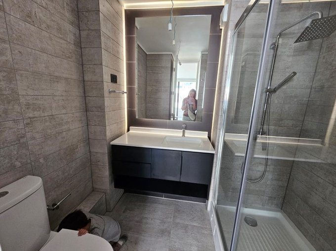 Baño con plato de ducha y mampara de vidrio
