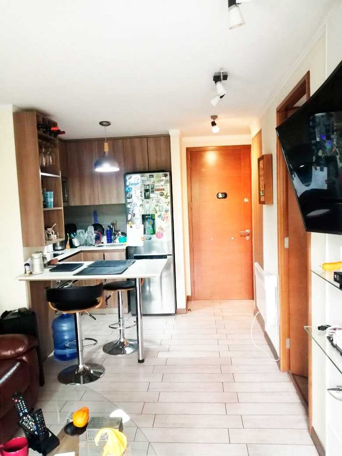Hermoso departamento con excelente ubicación, a pasos de avenida Las Condes (sector Tavelli), suroriente, en segundo piso, estar con terraza amplia, dormitorio en suite, instalación para lavadora, piso flotante y porcelanato, gastos comunes aproximados de $120.000, cocina americana con encimera de 3 platos, campana, microondas,horno eléctrico, loggia. Edificio con piscina, gimnasio, sala de estudio, lavandería, bicicletero,quincho.