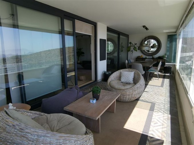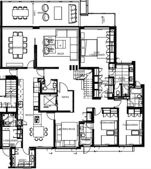 El departamento cuenta amplio hall de acceso y ascensor a la puerta. Tiene 3 dormitorios, todos en suite con baño con ventilación natural, pieza de servicio, living y comedor separados con acceso a una amplia terraza de 36 m2, sala de estar, loggia y amplia cocina con comedor de diario.