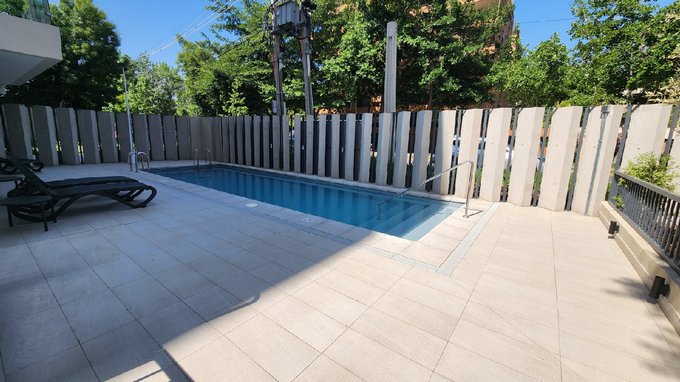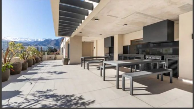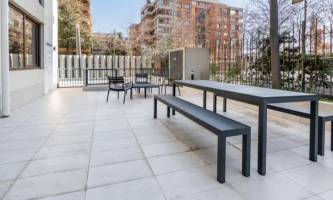 Interior cómodo y funcional: 1 dormitorio y 1 baño, 45 m totales (38 m útiles + 7 m semicubiertos) . Cocina full equipada con refrigerador, microondas, encimera y horno eléctrico , conexión a lavadora y aire acondicionado . Se arrienda con 1 estacionamiento y 1 bodega . Pet friendly .