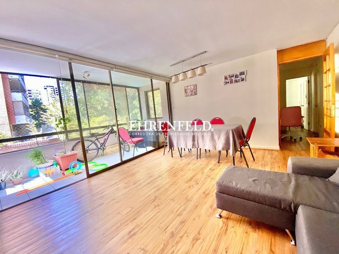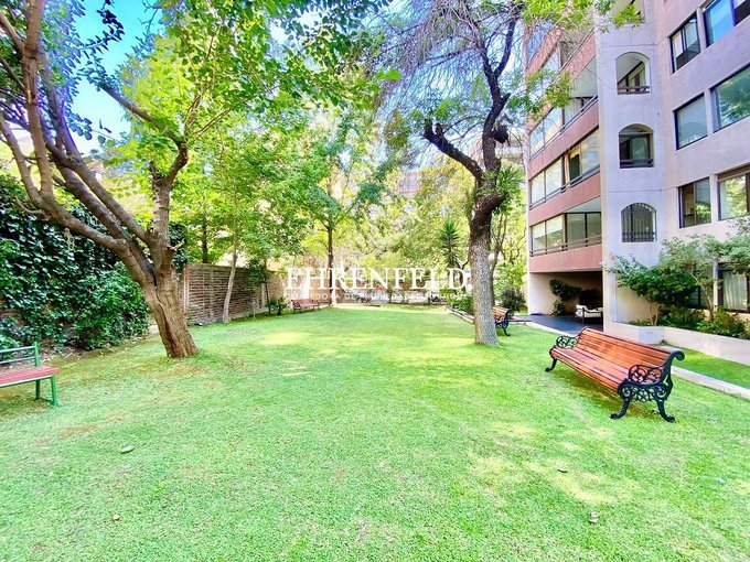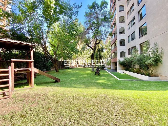 Departamento luminoso y cómodo en edificio, con jardín común, ubicado en consolidado y residencial sector de Las Condes, cercano al Mall Los Dominicos, comercio, supermercados, colegios, plazas para niños y adultos.