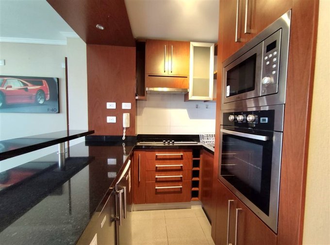 Living-comedor con salida al balcón por donde se sube a la azotea | Cocina abierta con horno eléctrico, microondas, encimera eléctrica, refrigerador bajo el mesón, campana, espacio para lavadora o lavavajillas | Dormitorio amplio en suite con walk in closet | Mueble giratorio en el muro que divide el living con el dormitorio, que permite disfrutar de la TV en ambos espacios | Azotea espectacular con Quincho techado.