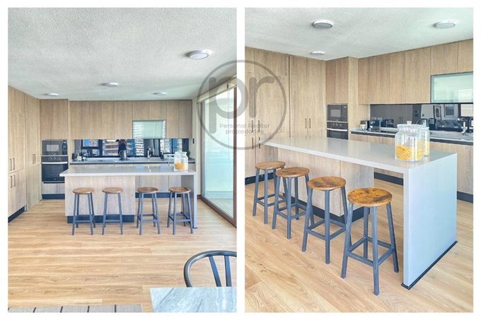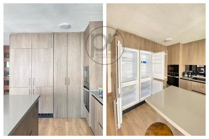Cocina integrada, totalmente equipada, refrigerador doble panelable, lavavajilla panelable.