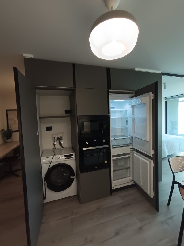 Este acogedor departamento amoblado nuevo en arriendo está situado en la comuna de Las Condes, una de las zonas más solicitadas y prestigiosas de Santiago. Se encuentra a pocas cuadras del Metro Hernando de Magallanes, lo que facilita el acceso al transporte público y a toda la ciudad. Las Condes es reconocida por su excelente calidad de vida, seguridad y una amplia gama de servicios como centros comerciales, restaurantes y parques.