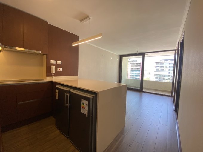 Cocina con refrigerador y conexión a lavadora. Edificio dispone de sala de eventos, sala de lavandería y estacionamientos de visita.