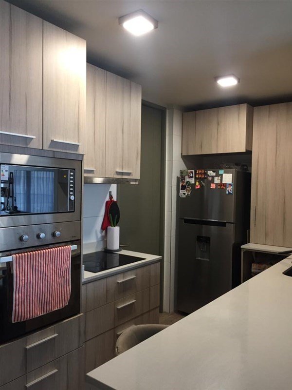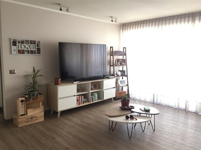Acogedor living comedor con cocina americana, kit de cocina con encimera eléctrica, horno eléctrico y horno microondas, amplio lavaplatos y logia (permite la instalación de una lavadora). Dos dormitorios, uno matrimonial con walk-in closet, baño en suite y otro dormitorio con baño al frente. Posee un living, comedor y dos dormitorios con terraza exterior con vista a la cordillera.