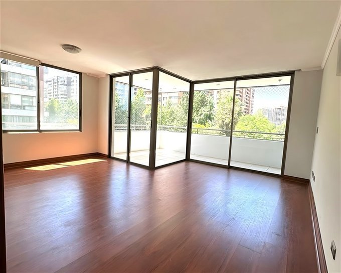 Estupendo departamento en Las Condes del año 2003 con orientación suroriente que tiene una superficie total de 112 m, superficie útil de 90 m y terraza de 22 m, ubicado cerca del Colegio Alemán y Colegio San Pedro Nolasco, a pasos del Parque Araucano, con una ubicación privilegiada cercana a Plaza Brasilia, Parque Juan Pablo II. Excelente conectividad con la Autopista Costanera Norte y Circunvalación Américo Vespucio. Sector residencial y tranquilo, ideal para familia con niños, a pasos de comercios y bancos.