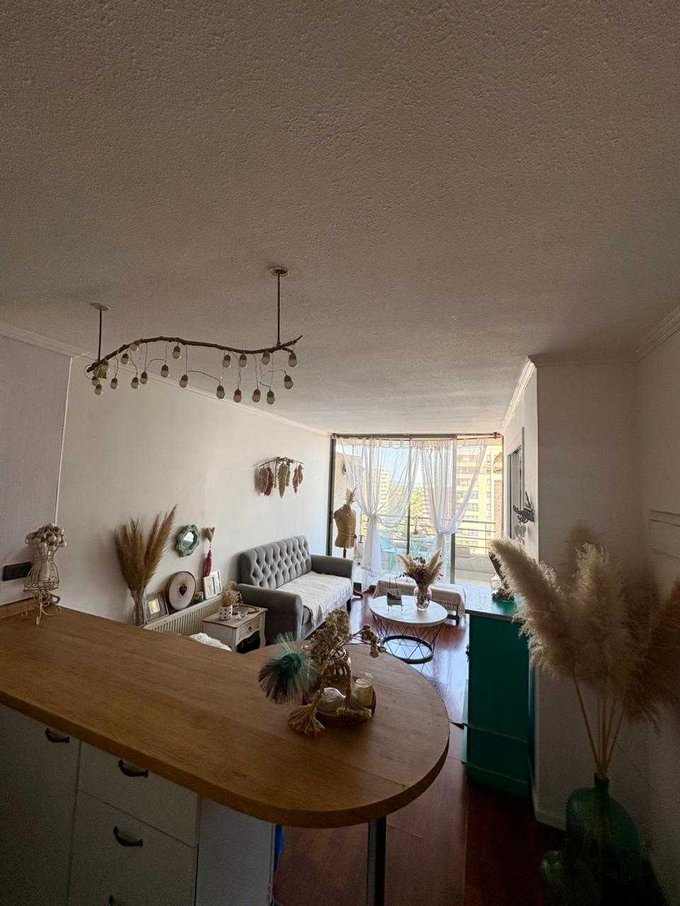 El departamento cuenta con living comedor con cortina de género y 1 closet, cocina americana,1 dormitorio en suite con cortinas black out, 1 baño con closet,, conexión para lavadora en mueble de la entrada, terraza amplia a lo largo de todo el departamento, con malla de seguridad , 1 estacionamiento , 1 bodega.