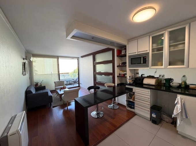 Este acogedor departamento estratégicamente ubicado cerca Avenida Las Condes y el Mall Sport cuenta con un dormitorio en suite y un estar con cocina integrada y salida a una rica terraza.