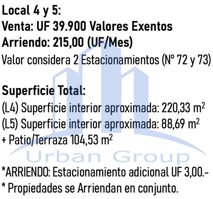 Arriendo: 215 UF Mensuales - Estacionamiento adicional: 3 UF