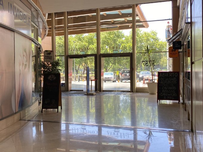 Local de 33 metros en Torre Oriente del Hotel Marriott, con vitrina para exhibición, ventanales y puerta de vidrio. Piso de cerámica, baño, mini bodega, privado cerrado con mamparas de vidrio.