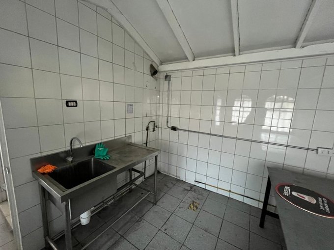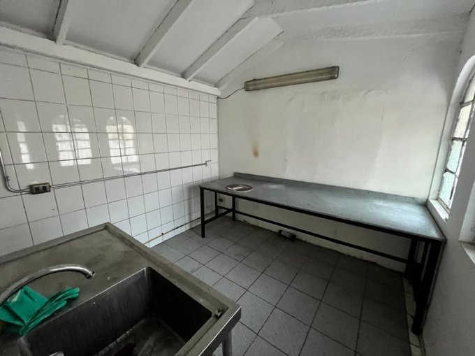 Área de trabajo con lavadero acero inoxidable para procesamiento de alimentos u otro uso.