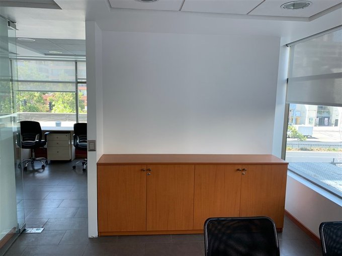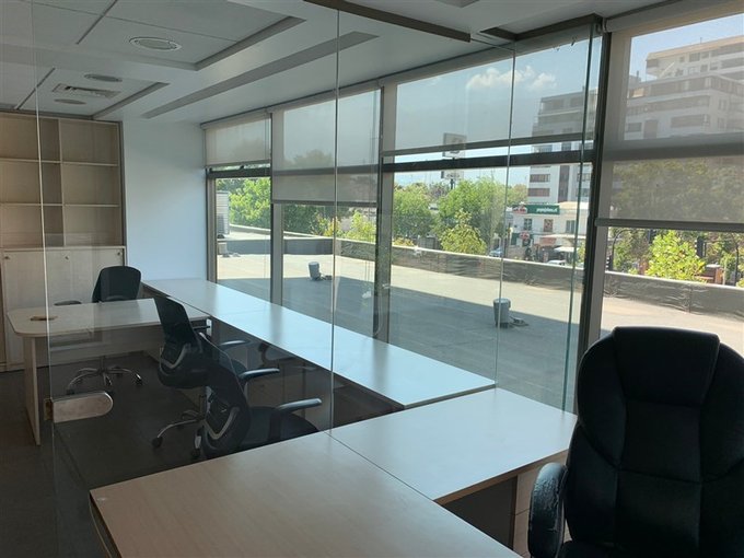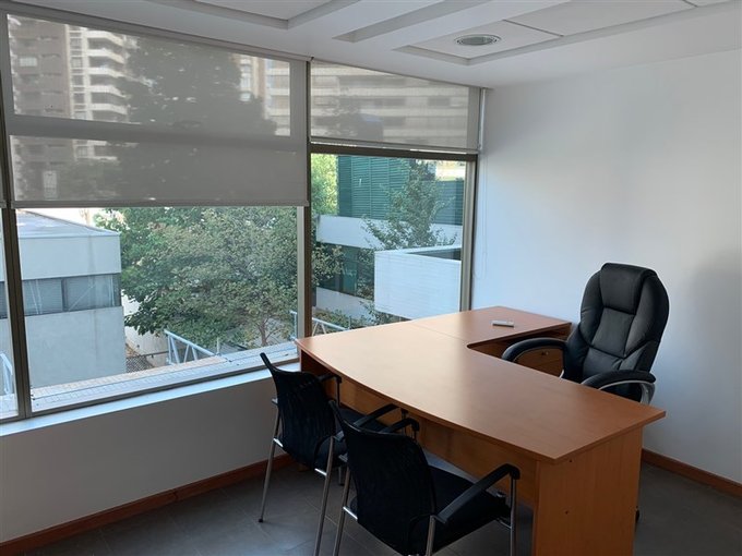 La oficina se entrega con cortinas rollers instaladas en todos sus ventanales.
