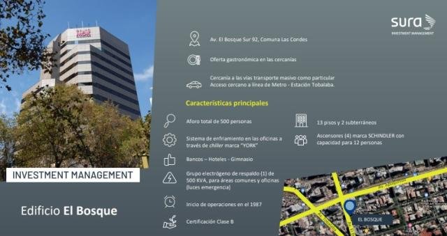ProCasa La Dehesa (Oficina Carloshurtado Propiedades) Arrienda oficina en sector consolidado de Avenida Apoquindo / El Bosque Sur en la Comuna de las Condes. Muy cerca de la Estación de Metro TOBALABA esta oficina cuenta con gran conectividad y transporte público diverso a media cuadra. OFICINA: 701 ? Piso 7 ? Superficie 557,55 m2 ? Valor del Arriendo: UF 0,45 por m2 ? Valor arriendo mensual: UF 250.89 ? Valor estimado en pesos: $ 7.950.000 ? Valor Estacionamientos: UF 4,50 c/u ? Valor arriendo Bodegas. UF 0,25 m2 ? Gastos Comunes: UF 0,14 m2 ? Disponibilidad: Inmediata CONDICONES DEL ARRIENDO: Contrato mínimo a 5 años Garantía: 1 Mes de arriendo HABILITACIÓN DE OFICINAS: Cielo americano, piso con alfombra en palmetas y luminarias LED Climatización, sprinklers y sensores de humo Seguridad 24/7 y control de acceso / torniquetes Gastos comunes: variables aprox. último mes UF 0,14 mensual . Procasa: 57652
