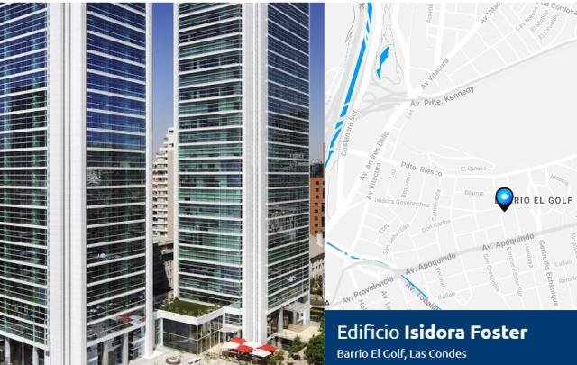 ProCasa La Dehesa (Oficina Carloshurtado Propiedades) ARRIENDA excelente OFICINA en el corazón del Barrio El Golf en la Comuna de las Condes. Posee una ubicación privilegia y su conectividad con autopistas y calles que dirigen hacia distintos puntos de la ciudad, destacando sus tres accesos vehiculares (Avda. Vitacura, Isidora Goyenechea y Avda. Andrés Bello). El proyecto cuenta con certificación LEED Gold y es líder en conservación de energía y diseño ambiental, destacando sus características técnicas enfocadas en el ahorro de energía y en la reducción del impacto ambiental. DESCRIPCIÓN OFICINA 301 (Piso 3) ? Superficie: 574 m ? Canon de arriendo: UF 0.60 + IVA por m ? Valor de arriendo mensual: UF 344.4 + IVA ? Valor estimado en pesos: $ 12.740.000 + IVA ? Valor estacionamientos: UF 4.00 + IVA c/u ? Disponibilidad inmediata ? Condiciones de entrega: Planta habilitada ? Gastos Comunes: UF 0.11 por m DESCRIPCIÓN EDIFICIO TORRE ISIDORA FOSTER * Edificio de 523 pisos * Superficie total: 14.000 m Área útil * 5 ascensores de alta velocidad * Estructura antisísmica con disipadores de energía * Alto sistema de seguridad asociado * Muro cortina de alta eficiencia, que maximiza la entrada de luz natural y minimiza la radiación solar * Climatización independiente para cuarto de piso que permite el funcionamiento sectorizado según las diferentes necesidades Superficies y características han sido proporcionadas por el propietario y están sujetas a confirmación. No deje de visitar! . Código interno ProCasa: 65931