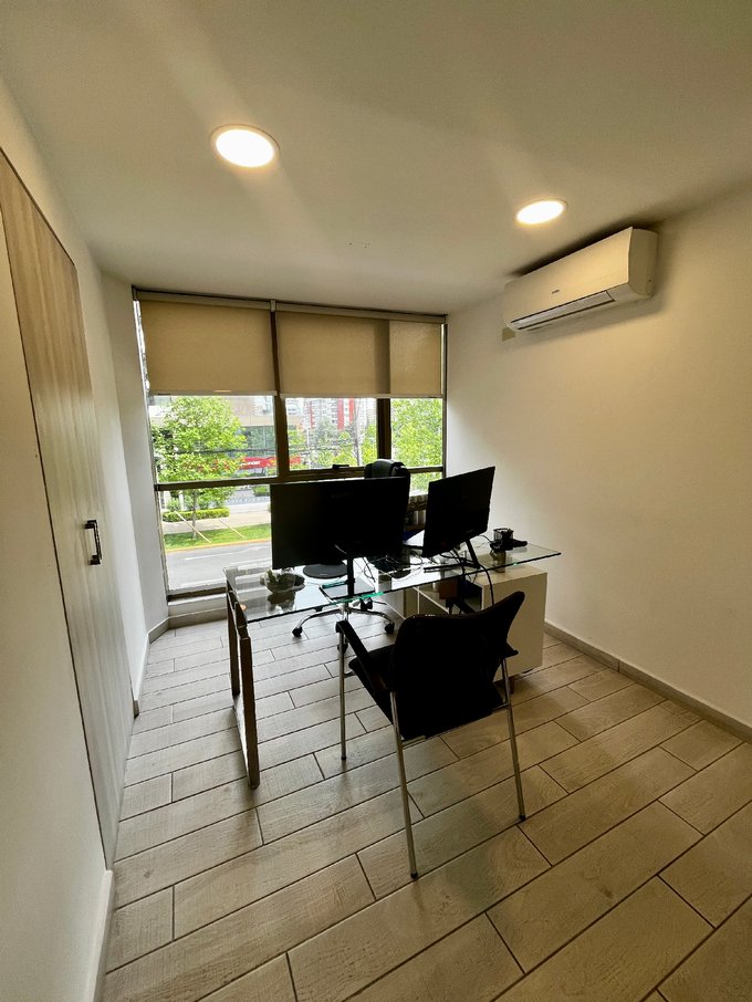 Ubicada en un reconocido edificio del sector La Capitanía, esta oficina de 220 m² ofrece una distribución eficiente, 6 privados, área común, 4 baños, bodega, 4 estacionamientos y hermosas vistas a la zona empresarial. Cuenta con seguridad 24/7, excelente conectividad y está cercana a servicios, bancos, centros comerciales y estación de metro.