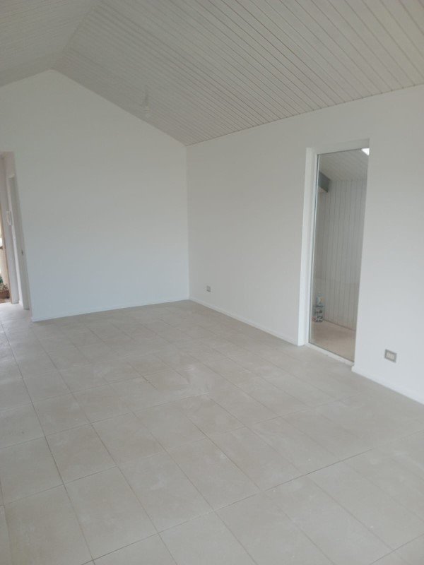Living & comedor unidos, piso porcelanato.