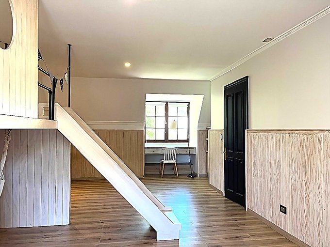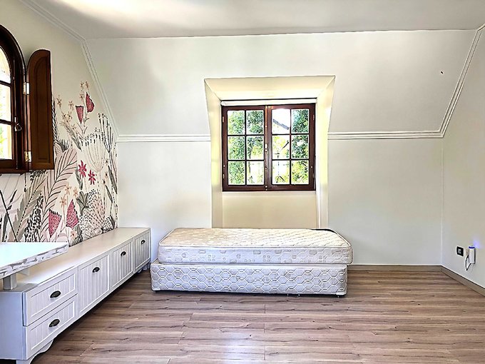 Cuenta con quincho, piscina, amplio jardín con terrazas y juegos para niños.