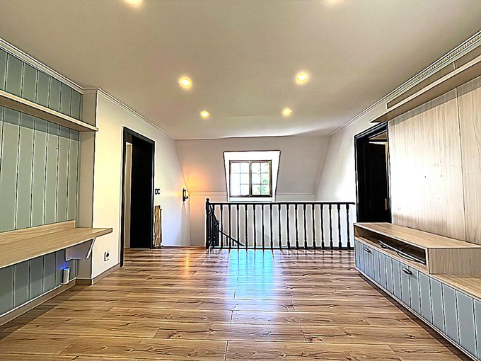 Segundo piso: Dormitorio en suite, escritorio, walk in closet, sala de estar, tercer dormitorio con closet, y acceso a amplio salón donde se encuentra un completo gimnasio equipado y área para home office.