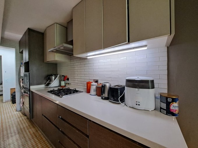 1 Hall de acceso, 1 baño de visita,1 living con salida a 1amplia terraza, 1 comedor y cocina integrados, 2 loggias, 1 dormitorio de servicio, 1 baño de servicio