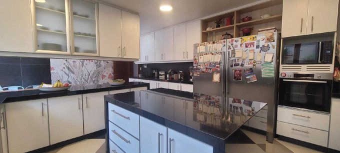 Moderna Cocina Gourmet: Equipada con cubiertas de alta gama y un práctico comedor de diario. Se incluye un refrigerador de última generación.
